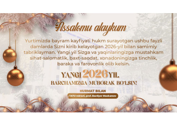 Yangi 2026-yil barchamizga tinchlik, muvaffaqiyat va yorqin kelajak olib kelsin!